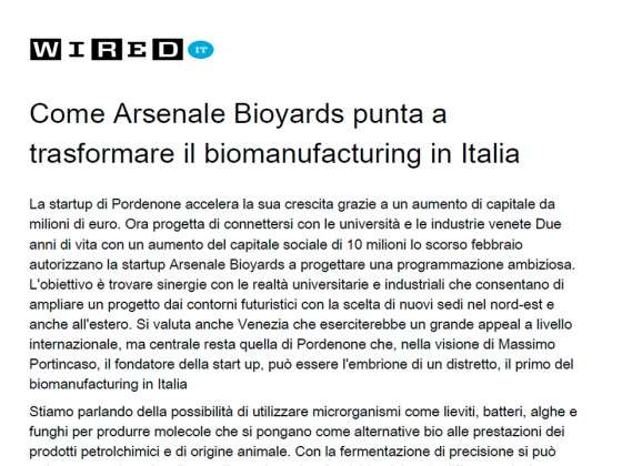 L’azienda punta alla creazione del primo distretto italiano del biomanufacturing, con centro a Pordenone e possibili sedi nel Nord-Est e all’estero, integrando laboratorio e industria in un unico ecosistema produttivo. Supportata da investimenti significativi e da network internazionali, Arsenale Bioyards mira a portare le proprie soluzioni su scala commerciale entro il 2028-29, contribuendo allo sviluppo di un mercato ancora inesistente ma strategico per la sostenibilità globale.