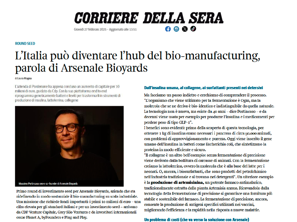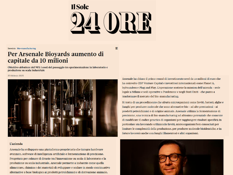 Arsenale Bioyards è una startup di biomanufacturing avanzato che sviluppa piattaforme industriali basate sulla fermentazione di precisione.